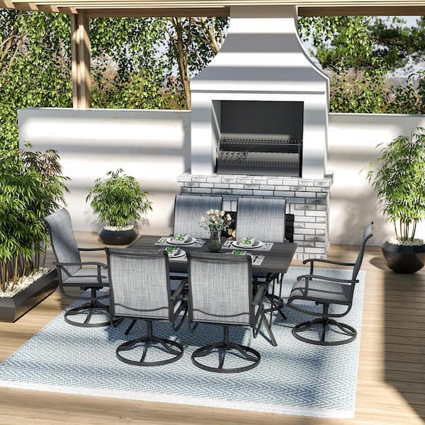 Gray 7-Piece Metal Outdoor Patio Dining Set with Rectangle Table and Textilene Swivel Chairs