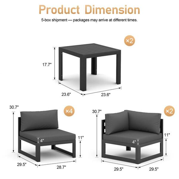 Gray 8-Piece Aluminum Outdoor Patio Conversation Sectional Deep Seating Sofa Set with Dark Gray Cushions and Tables