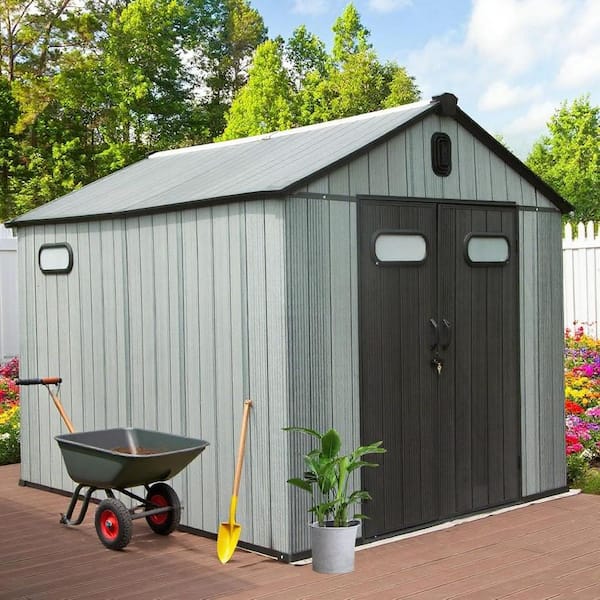 Gray 8 ft. W x 12 ft. D Resin Shed with Lockable Door, Windows and Vents (96 sq. ft. )
