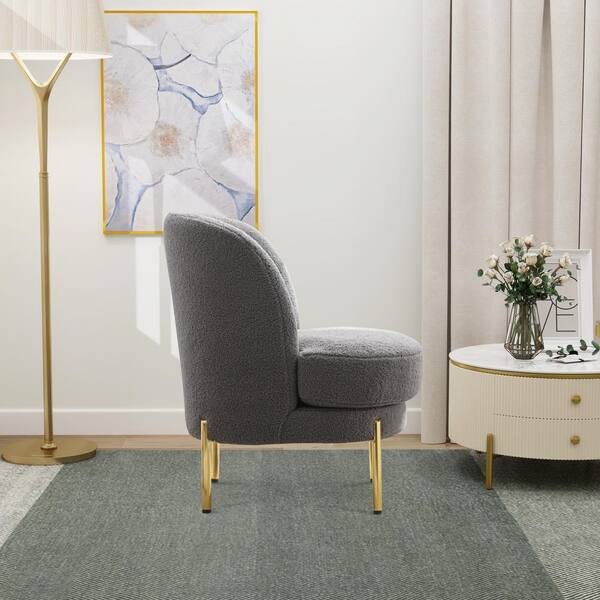 Gray Accent Boucle Upholstered Curved Backrest Armless Chair with Golden Adjustable Legs