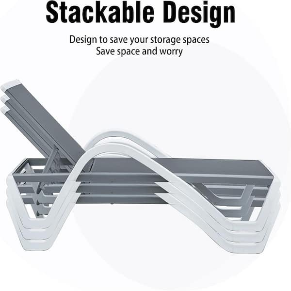 Gray Adjustable Chaise Lounge Aluminum Outdoor Patio Lounge Recliner Chair with Arm and Plastic Table