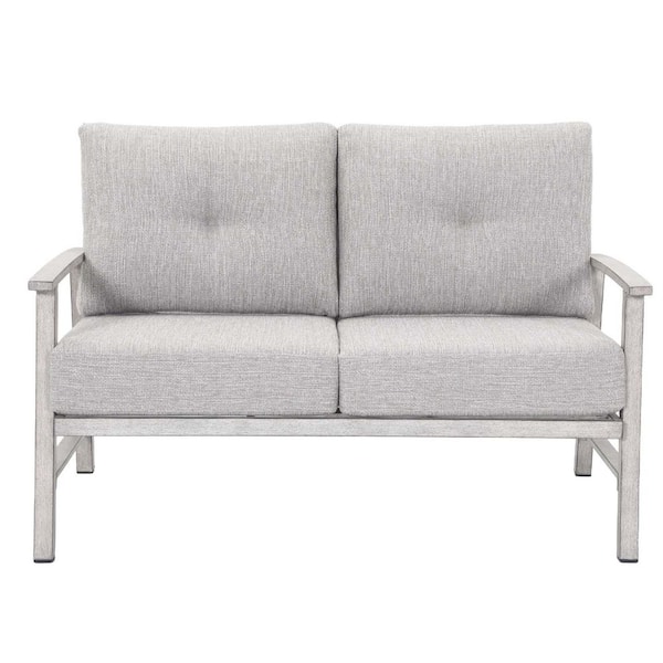 Gray All-Weather Aluminum Outdoor Loveseat 2 Seats Patio Sofa Couch with Removeable Light Gray Cushions
