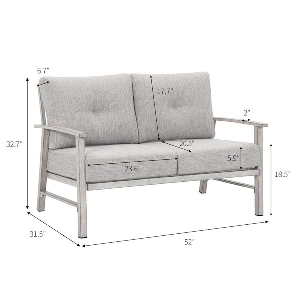 Gray Aluminum All Weather Outdoor Patio Loveseat, 2 Seats Sofa Couch with Gray Thick Cushion for Deck, Lawn, Garden