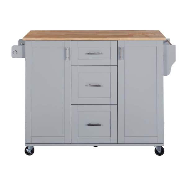 Gray Blue Wood 51.49 in. Kitchen Island with 3-Drawer, 2-Slide-out Shelf and Internal Storage Rack
