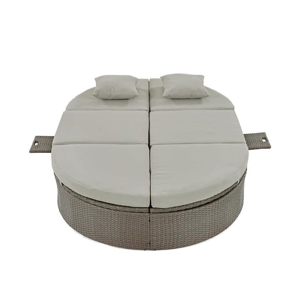 Gray Composite Outdoor Sun Bed Patio 2-Person Day Bed with Cushions and Pillows, Rattan Garden Reclining Chaise Lounge