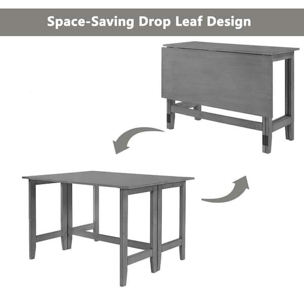 Gray Farmhouse Wood Outdoor Dining Rectangular Foldable Table with Extension Drop Leaf for Small Places and Kitchens
