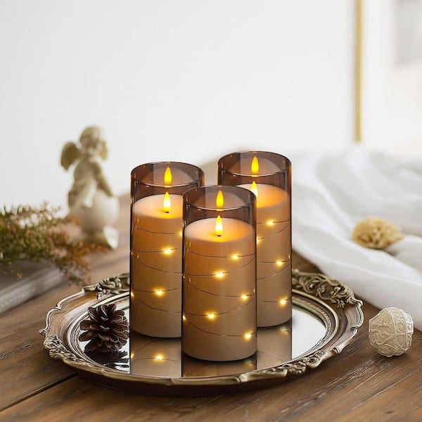 Gray Flickering Flameless Candles with Remote Timer, LED Battery Operated Candles 6-Pack
