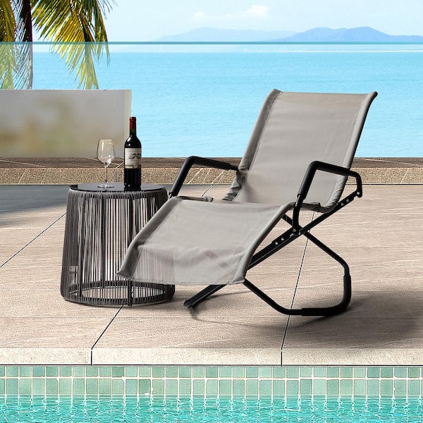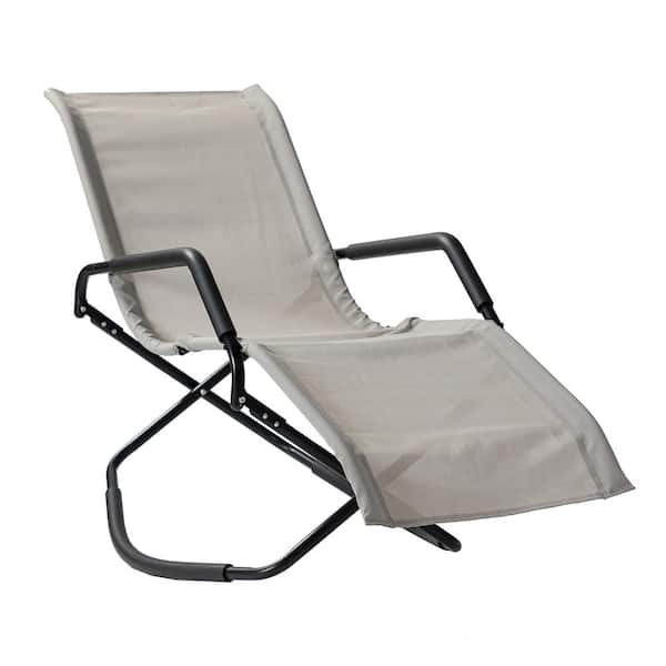 Gray Folding Iron Outdoor Recliner in Gray (Set of 1)