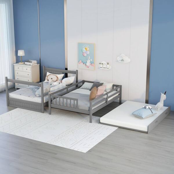 Gray Full Over Full Bunk Bed with Trundle,Stairway Bunk bed Frame with 4 Drawers, Detachable Wood Full Bunk bed for Kids