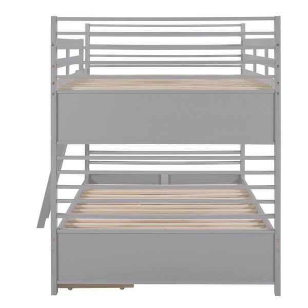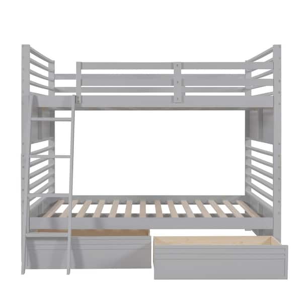 Gray Full Over Full Size Wood Bunk Bed with 2 Drawers