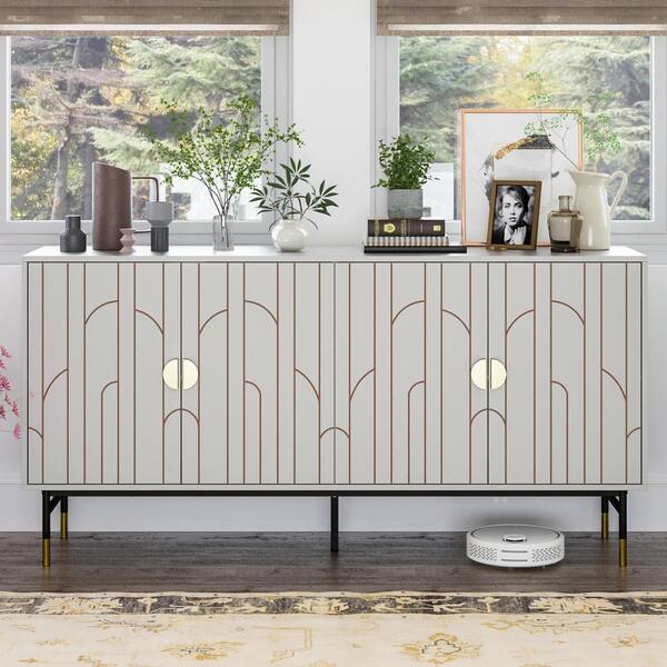 Gray Geometric Patterns Accent Storage Cabinet in Gray and Black With Adjustable Shelves and Metal Legs