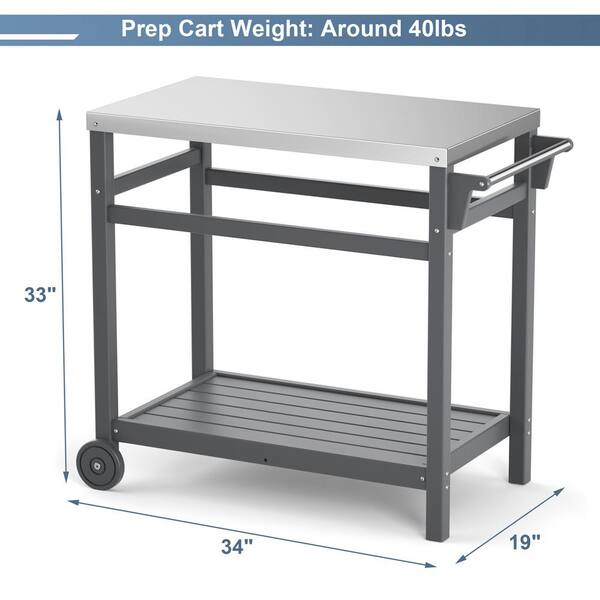 Gray Grill Cart Outdoor Prep Cart Dining Table for Pizza Oven, Patio Grilling Backyard BBQ