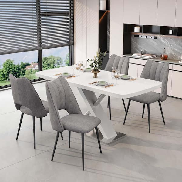 Gray Linen Fabric Modern Dining Chairs Accent Side Chairs High Backrest Upholstered Kitchens Chairs (Set of 4)