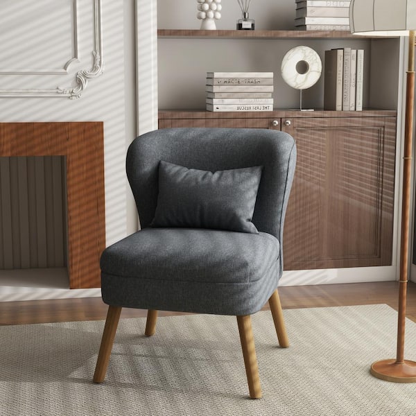 Gray Linen Upholstered Armless Accent Side Chair with Wood Legs and One Pillow(Set of 1)