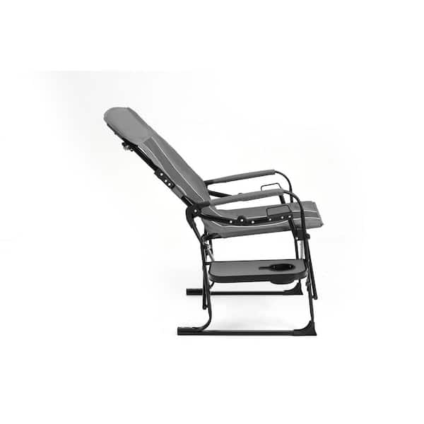 Gray Metal Folding Camping Chair Lawn Chair Portable Director's Chair with Side Table and Pocket for Fishing Picnic