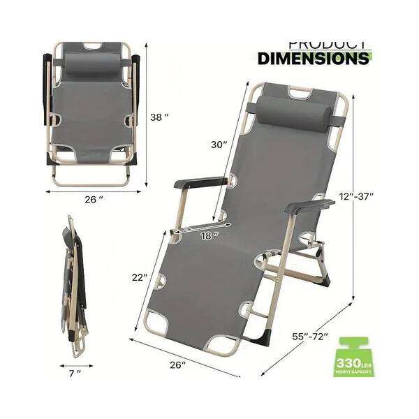 Gray Metal Outdoor Lounge Chair Outdoor Recliner Deck Chair (Set of 1)