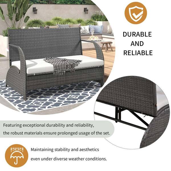 Gray Metal Outdoor Loveseat with Beige Cushions, Versatile Outdoor Loveseat that Converts to 4 Seats and a Table