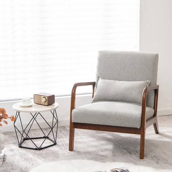 Gray Modern Accent Chair with Rubber Wood Frame and Lumbar Pillow