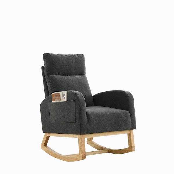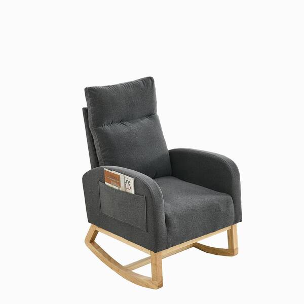 Gray Modern Waterproof Velvet Accent High Backrest Lounge Arm Rocking Chair