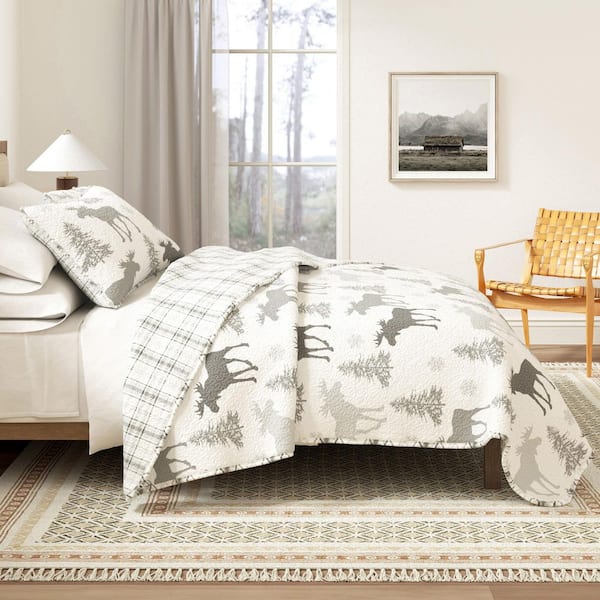 Gray Moose Print Premium Nature Inspired Twin Microfiber 2-Piece Quilt Set Bedspread