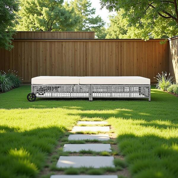 Gray Outdoor Lounge Chair, Chaise Lounge with 5-Postion Adjustable Backrest, Beige Cushions