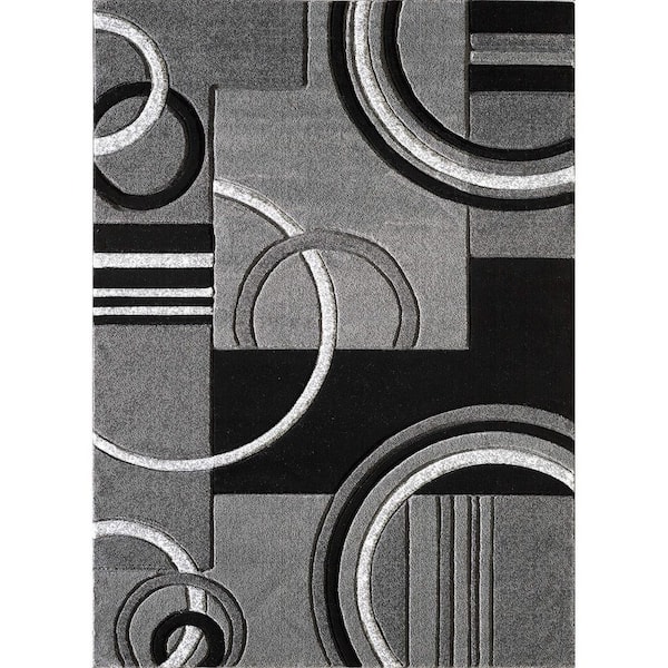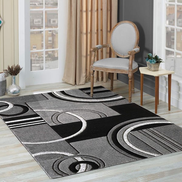 Gray Polypropylene 4 ft. x 6 ft. Geometric Indoor Area Rug