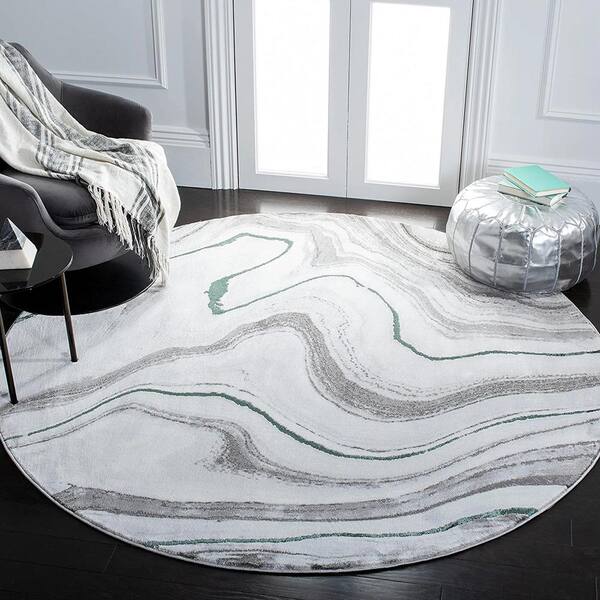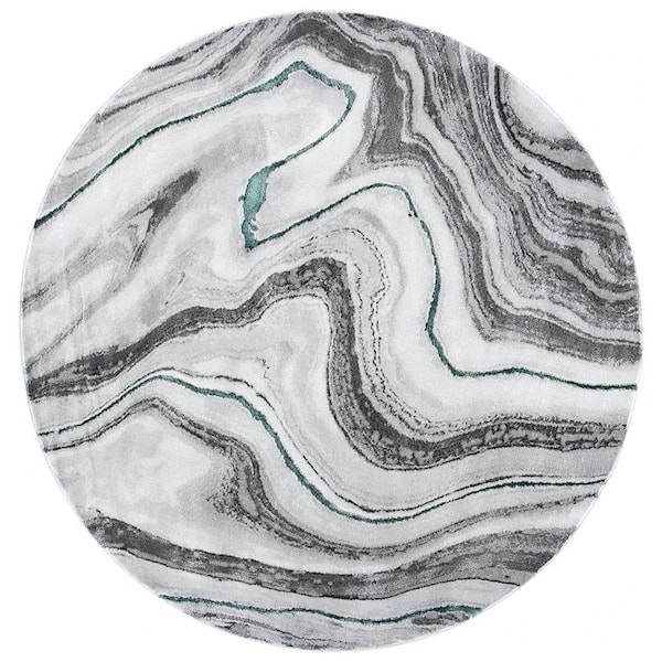 Gray Polypropylene 5 ft. 3 in. x 5 ft. 3 in. Abstract Indoor Round Area Rug