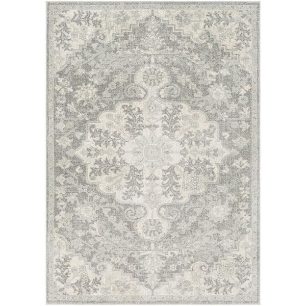 Gray Polypropylene 5 ft. x 7 ft. Floral Indoor/Outdoor Area Rug