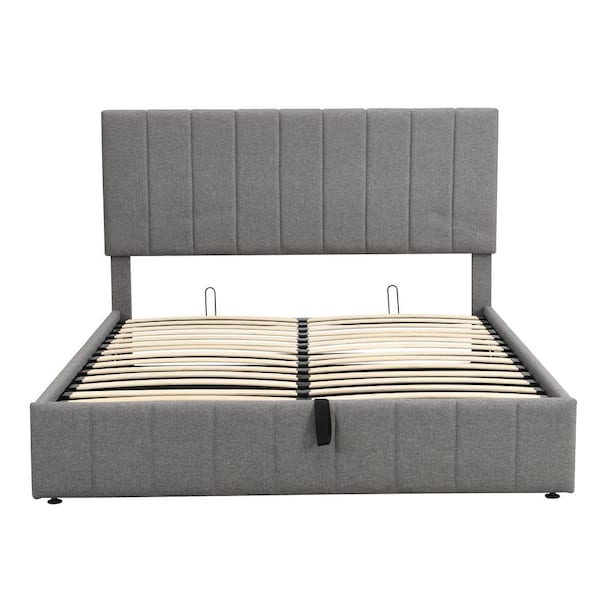 Gray Queen Upholstered Platform Bed With Gas Lift up Storage, Wooden Platform Bed Frame with Hydraulic Storage System