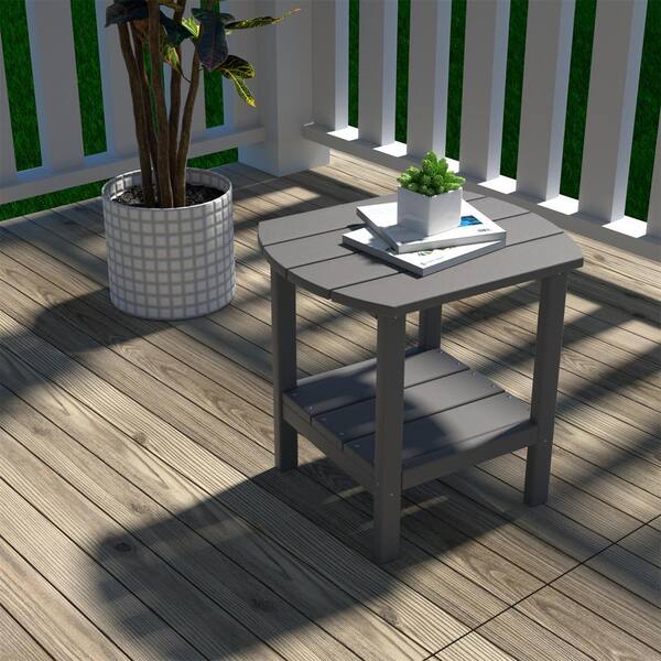 Gray Rectangle HDPE Plastic Outdoor Side Table with 2-Tier