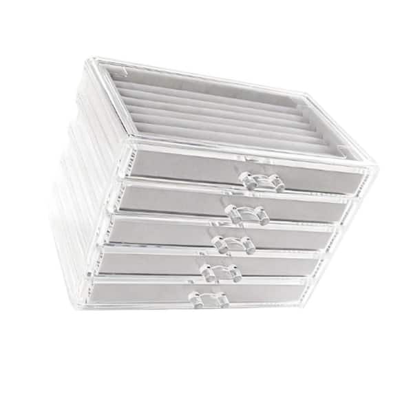 Gray Rectangular Acrylic Jewelry Box with 5-Drawer