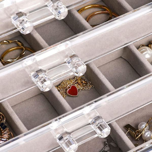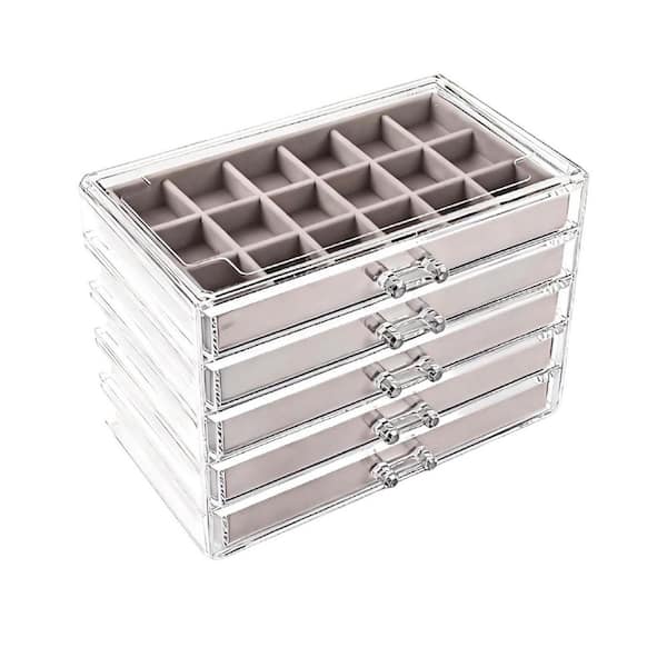 Gray Rectangular Acrylic Jewelry Box with 5-Drawer
