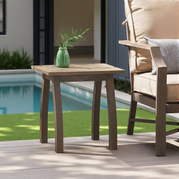 Gray Rectangular Wood Outdoor Side Table, Outdoor End Table with Slatted Tabletop