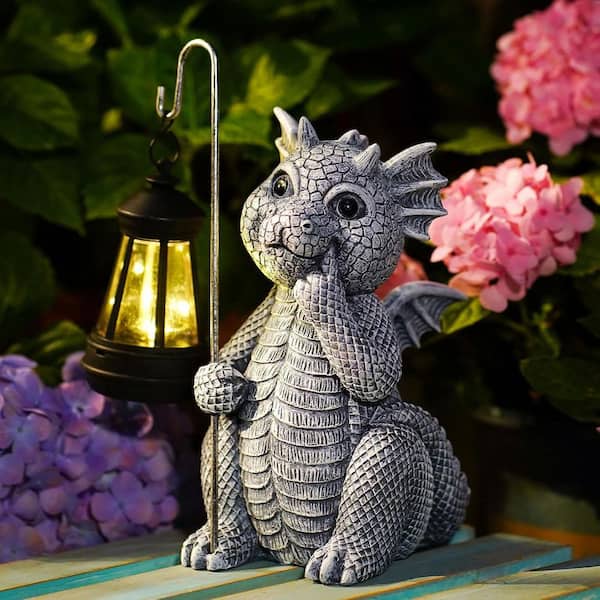 Gray Resin Solar Dragon Garden Statue