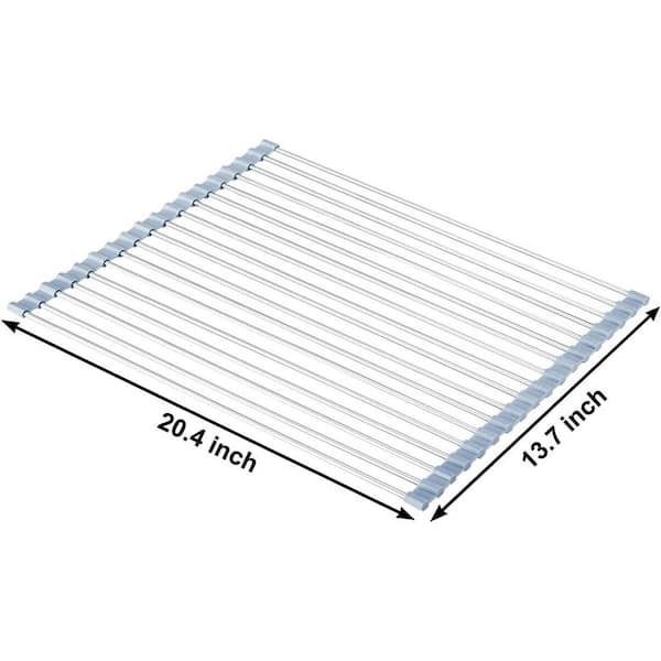 Gray Roll Up Over Sink Dish Rack Stainless Steel Kitchen Dish Rack Heat Resistant Foldable Dish Drying Rack
