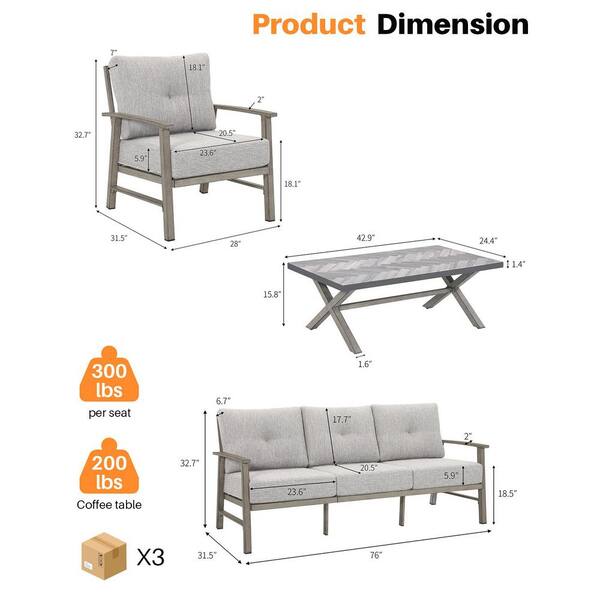 Gray Vintage 4-Piece Aluminum Outdoor Patio Conversation Sofa Set with Gray Cushions