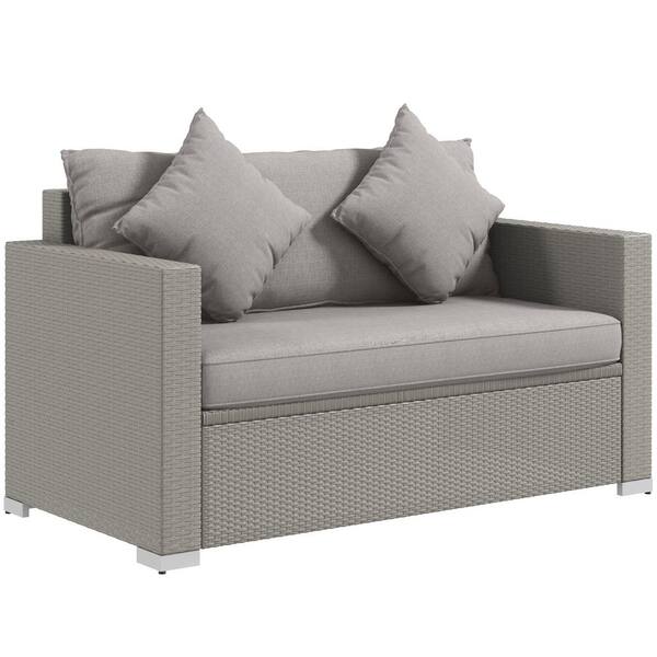 Gray Wicker Outdoor Loveseat with Gray Cushions and Pillows, Patio PE Rattan 2-Seat Sofa for Backyard, Garden, Poolside
