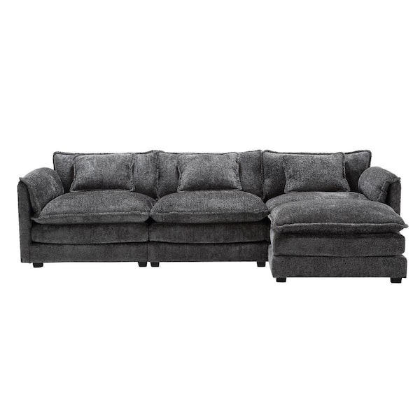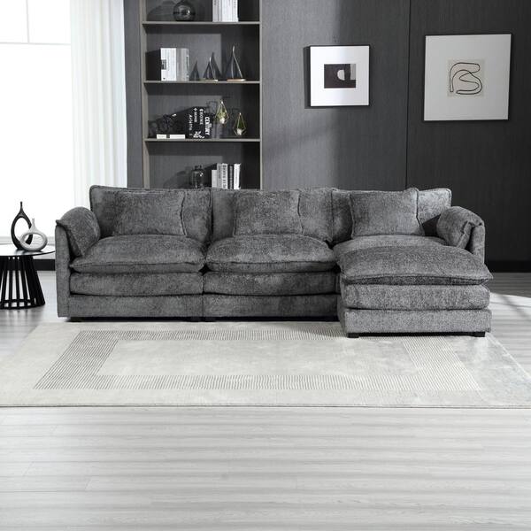 Gray Wood Fabric Boucle L-Shape Outdoor Sectional Safa with Cushions