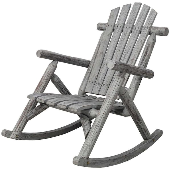 Gray Wood Outdoor Rocking Chair, Porch Rocker with High Back and Armrest, Patio Rocker for Garden Lawn Balcony Backyard