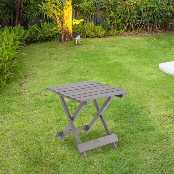 Gray Wood Outdoor Side Table, Folding Portable Outdoor Dining Table Coffee Table for Patio, Backyard, Balcony, Pool