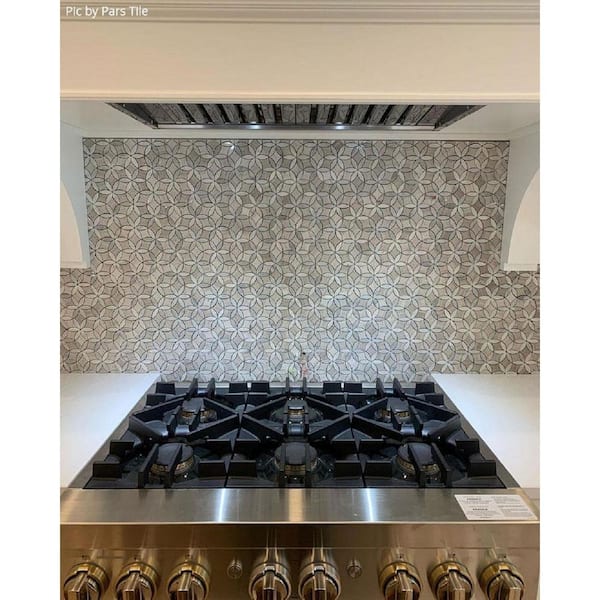 Gray and Beige 4 in. x 5 in. Wooden Flower Polished Marble Mosaic Tile Sample (0.13 sq. ft./Piece)
