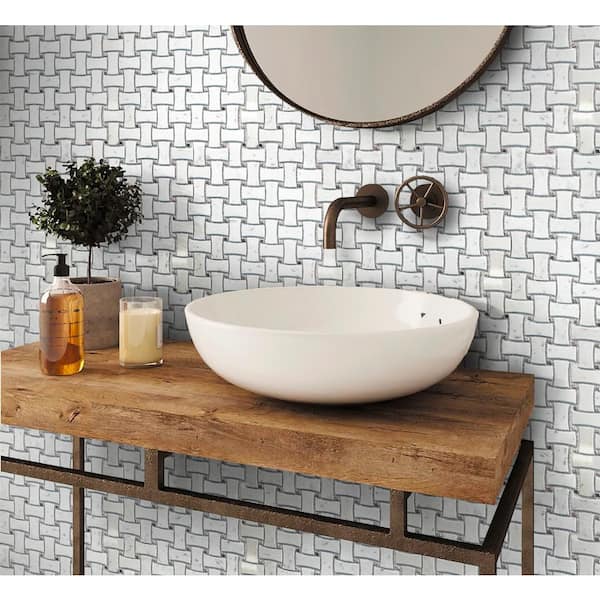 Gray and White 4 in. x 5 in. Polished Basketweave Marble Floor and Wall Mosaic Tile Sample (0.13 sq. ft./Piece)