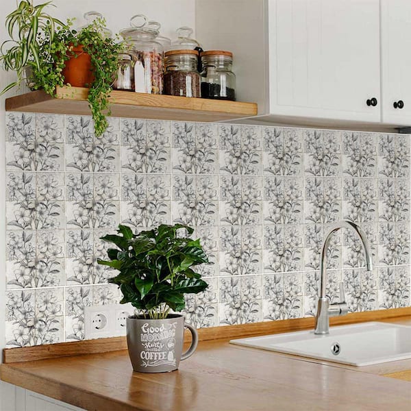 Gray and White R58 4 in. x 4 in. Vinyl Peel and Stick Tile (24-Tiles, 2.67 sq. ft. / Pack)