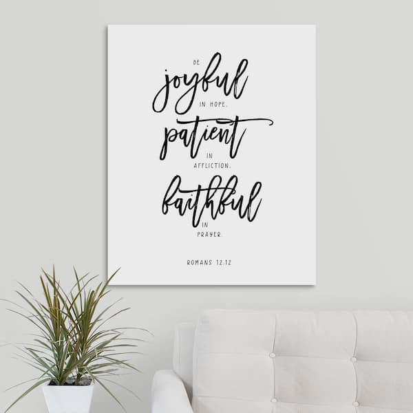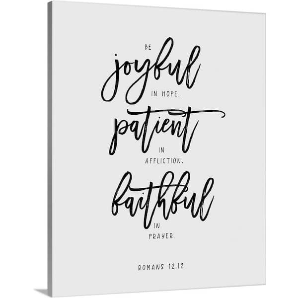 24 in. x 30 in. "Romans 12:12 - Scripture Art in Black and White" by Inner Circle Canvas Wall Art