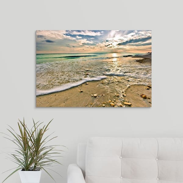 30 in. x 20 in. "Beautiful Beach Sunset Sea Shells On Beach Picture" by Eszra Tanner Canvas Wall Art