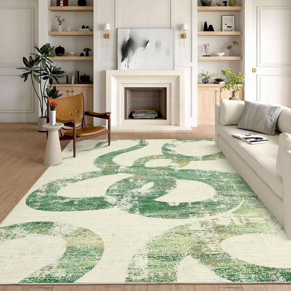 Green 10 ft. x 13 ft. Ultra Thin Low Pile Foldable Lightweight Rug Snake Print Washable Polyester Area Rug