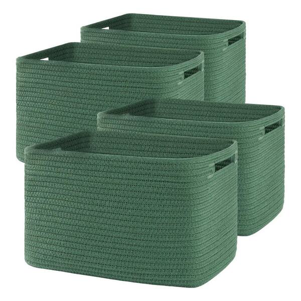 Green 9 in. x 7.8 in. Cotton Decorative Basket with Handles Set of 4