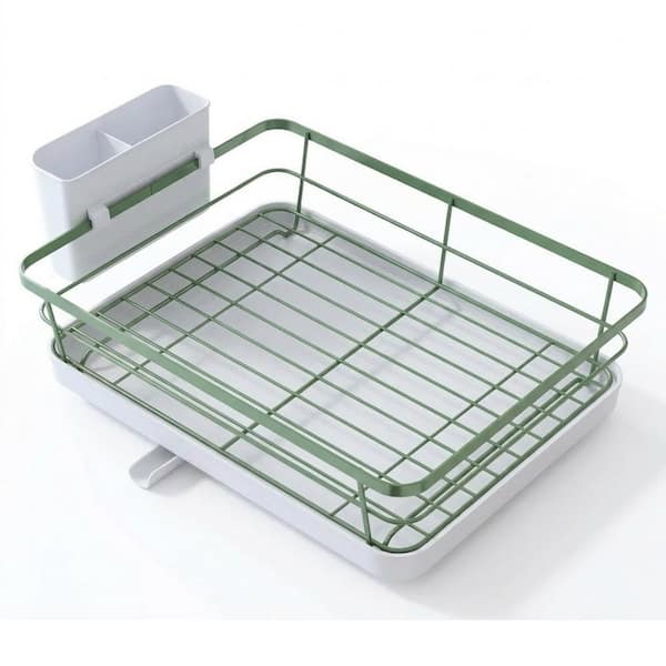Green Compact Kitchen Dish Rack with Cutlery Holder, Stainless Steel Sink Organizer, Rust-Proof Drying Rack