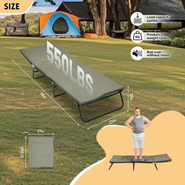 Green Folding Camping Cot for Adults 5-Angle Adjustable Camping Cot Heavy Duty Outdoor Bed with Carry Bag
