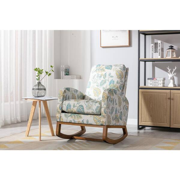 Green Leaf Polyester Comfortable Rocking Chair for Living Room